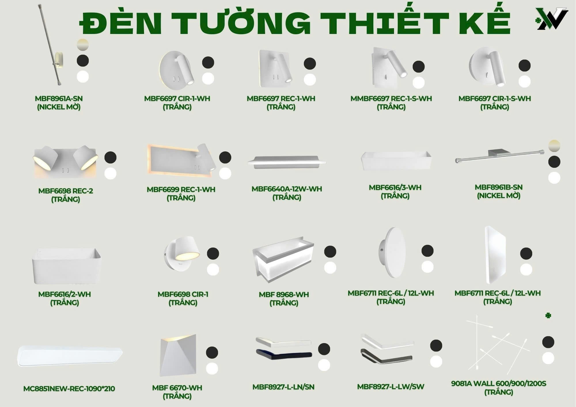 – Mẫu mã đa dạng: đèn gắn tường trụ, đèn hộp, đèn gương, đèn hắt lên – hắt xuống...