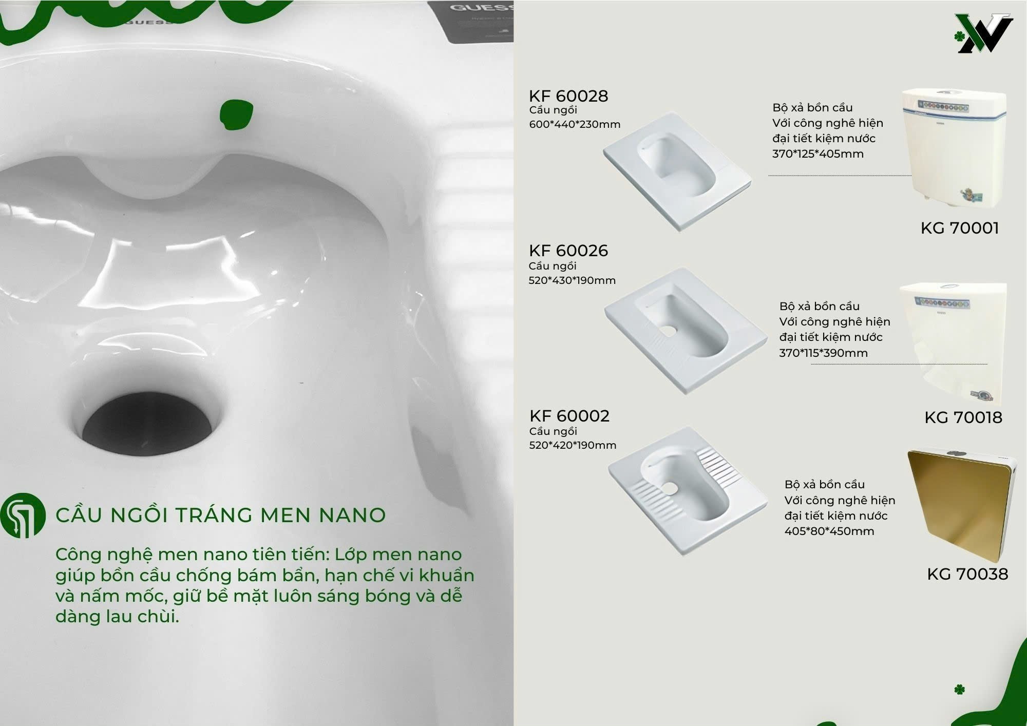 Chất liệu: Sứ vệ sinh cao cấp, phủ men Nano hoặc Ceramic chống bám bẩn, dễ chùi rửa.