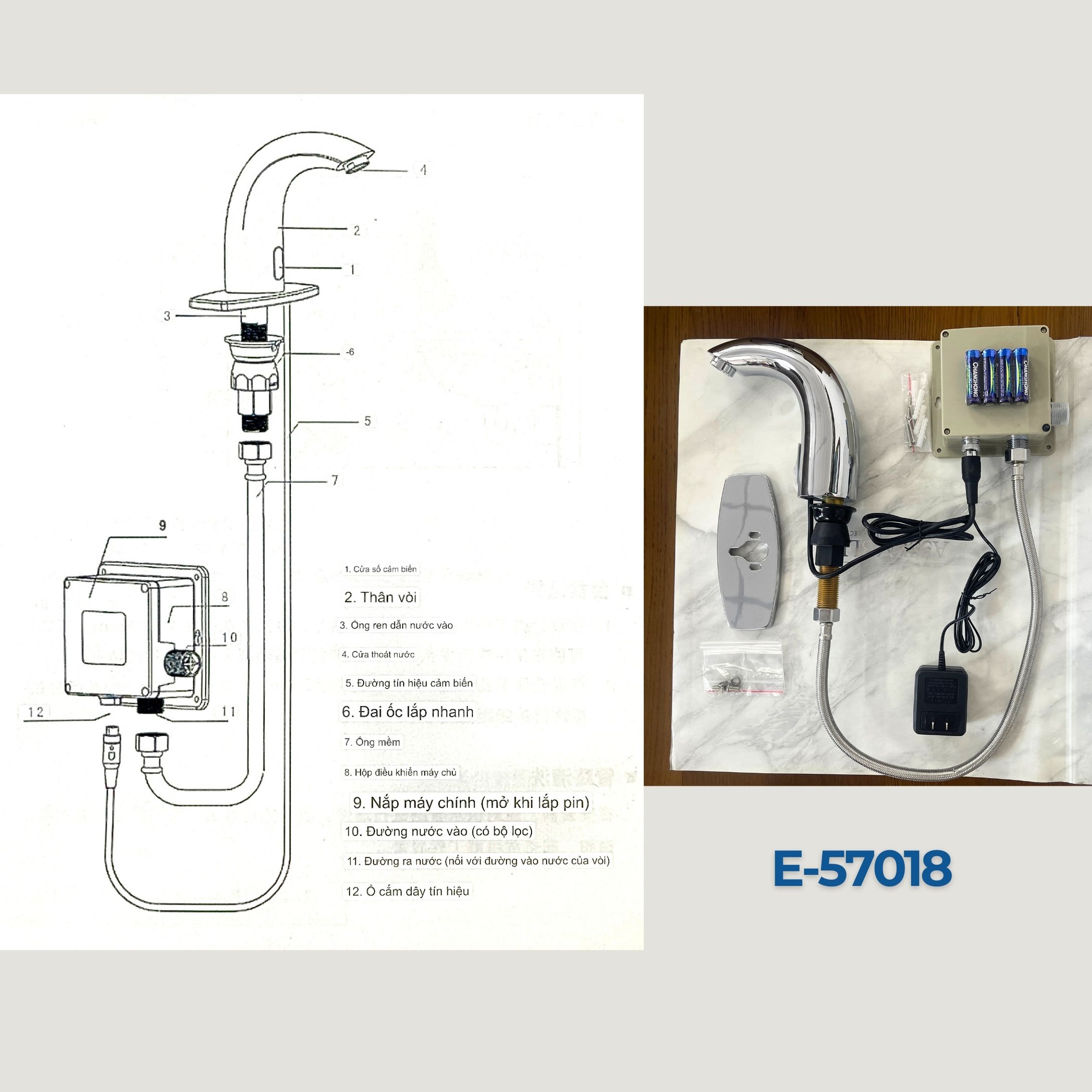 - Vòi nước tự động cảm ứng rửa tay cho chậu rửa mặt (lavabo), thay thế cho các loại vòi xả thủ công, sử dụng trong gia đình, nhà hàng, bệnh viện, trường học, siêu thị, khách sạn...mang đến sự sang trọng, thông minh, tiện lợi, hiệu quả và tiết kiệm. Sản phẩm đáp ứng đầy đủ các tiêu chuẩn cho mọi công trình.